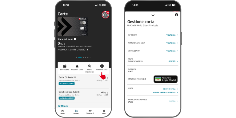 Grazie all'App Mobile Banking hai sempre la tua UniCredit World Elite in tasca per: