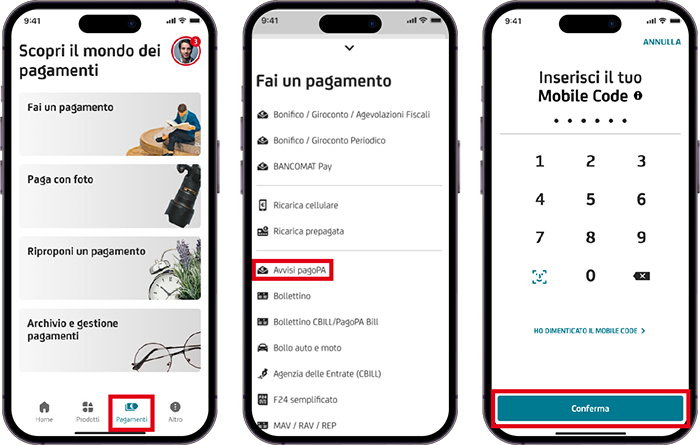 - pagare in modo semplice e veloce senza inserire manualmente alcun dato